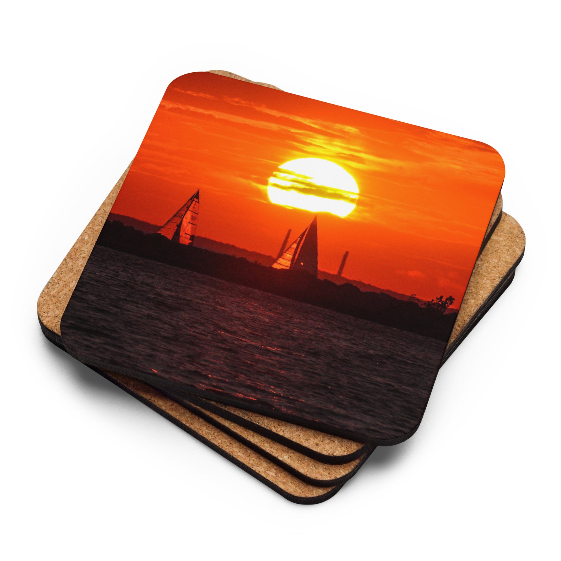 Deep Orange Lake Erie Sunset Cork-Back Coaster
